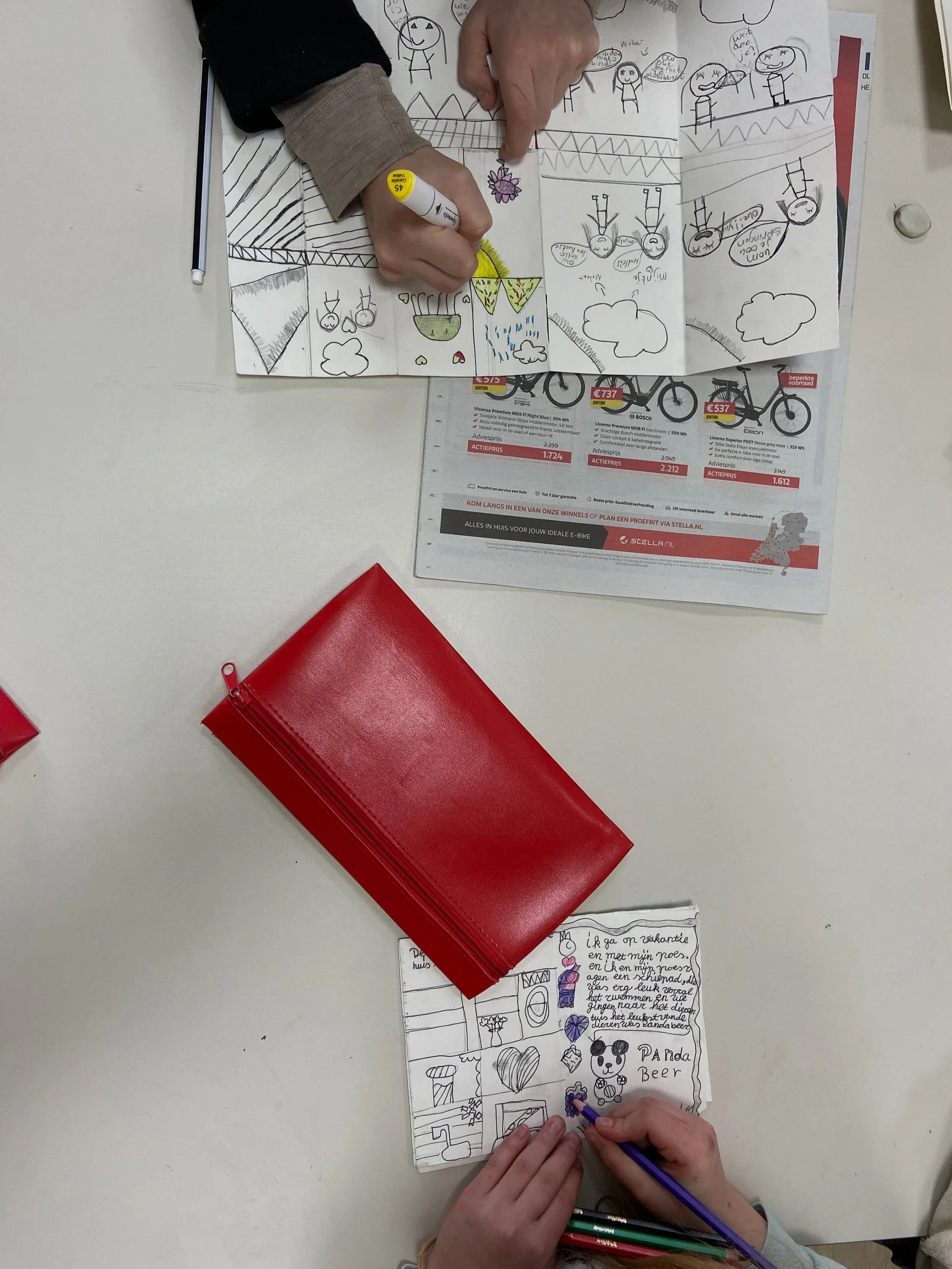 My interest in storytelling comes back in the workshops I give to children. The ages vary between elementary and middle school (4–12 or 12–18). With simple guidelines, they learn how to illustrate a message they want to share with others.